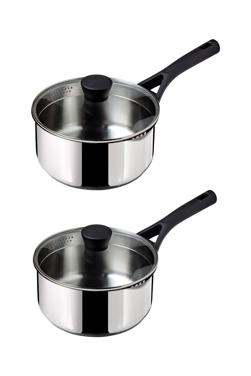 2 x casseruole con coperchio colatutto in acciaio inossidabile Expert Touch - 16/20 cm