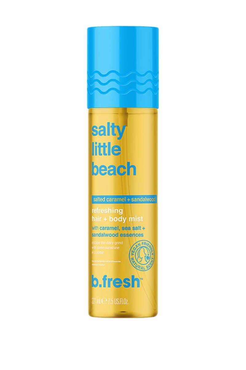 Uno spray rinfrescante per capelli e corpo con estratto di caramello salato e legno di sandalo che rivitalizza la pelle e i capelli.