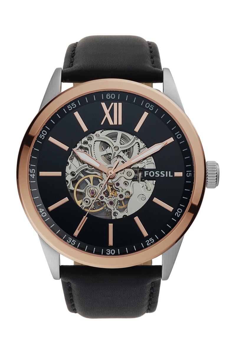 Orologio automatico in pelle Flynn - Nero e dorato rosa