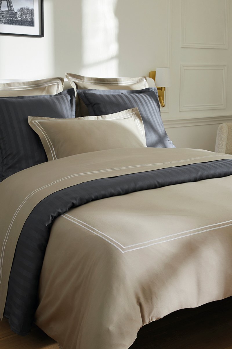 Parure copripiumino in raso di cotone 80 fili/cm² Nice - Bianco e taupe