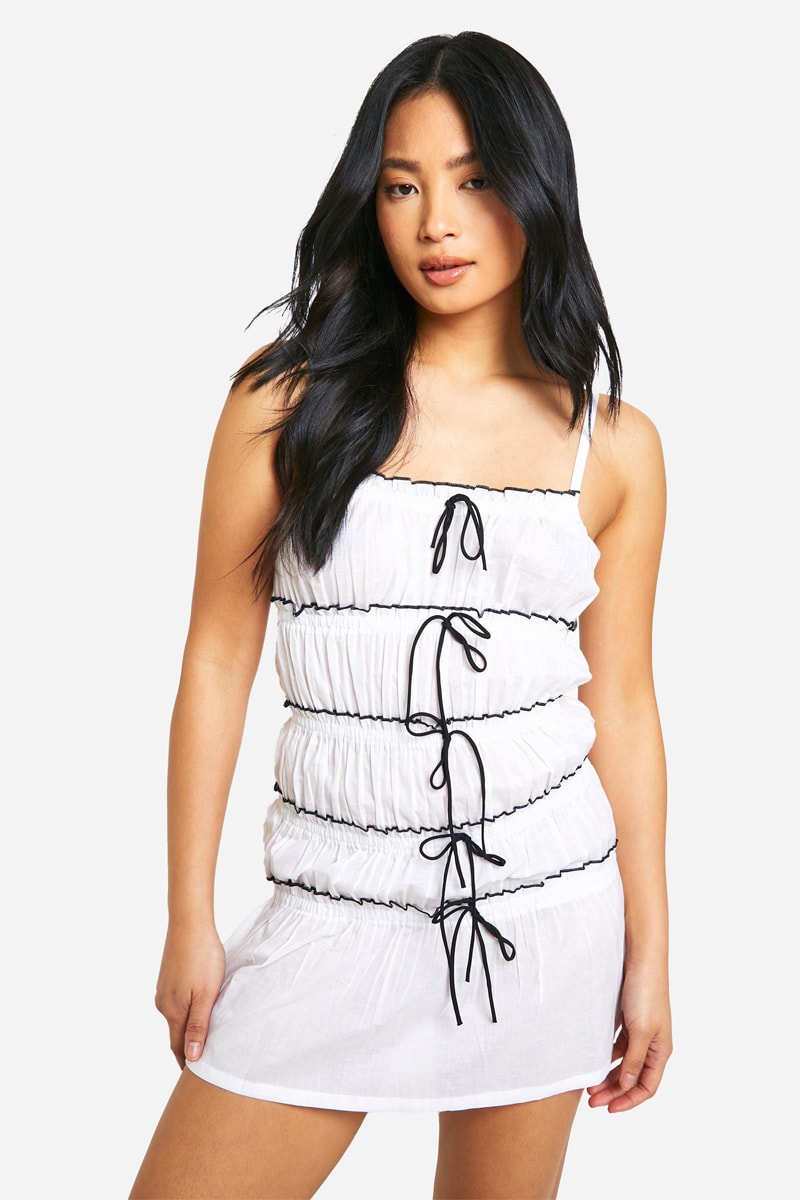 Bordi a contrasto e volant sul davanti e sul retro.