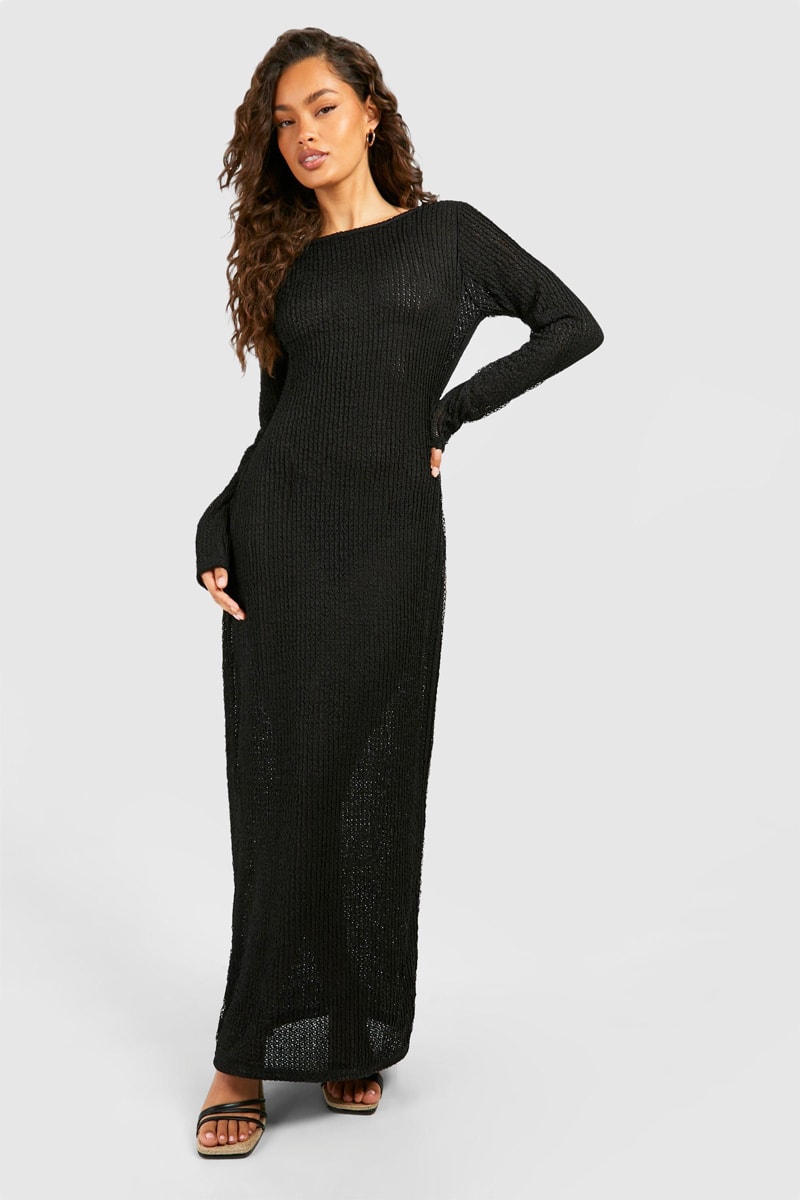 Abito lungo in maglia traforata.