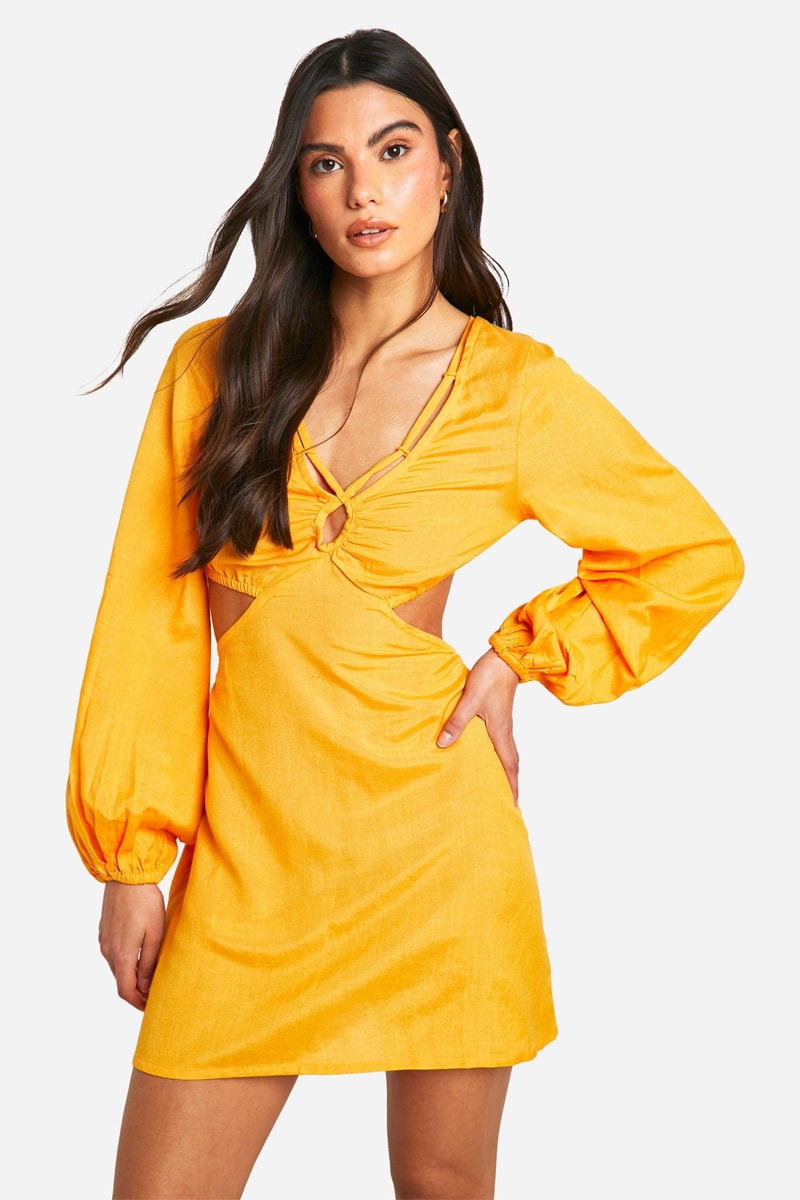 Abito a campana in lino - Arancione