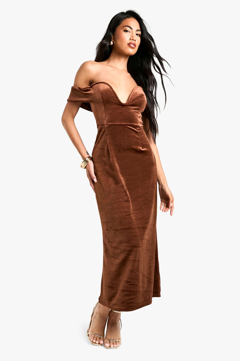 Abito lungo in velluto - Cammello
