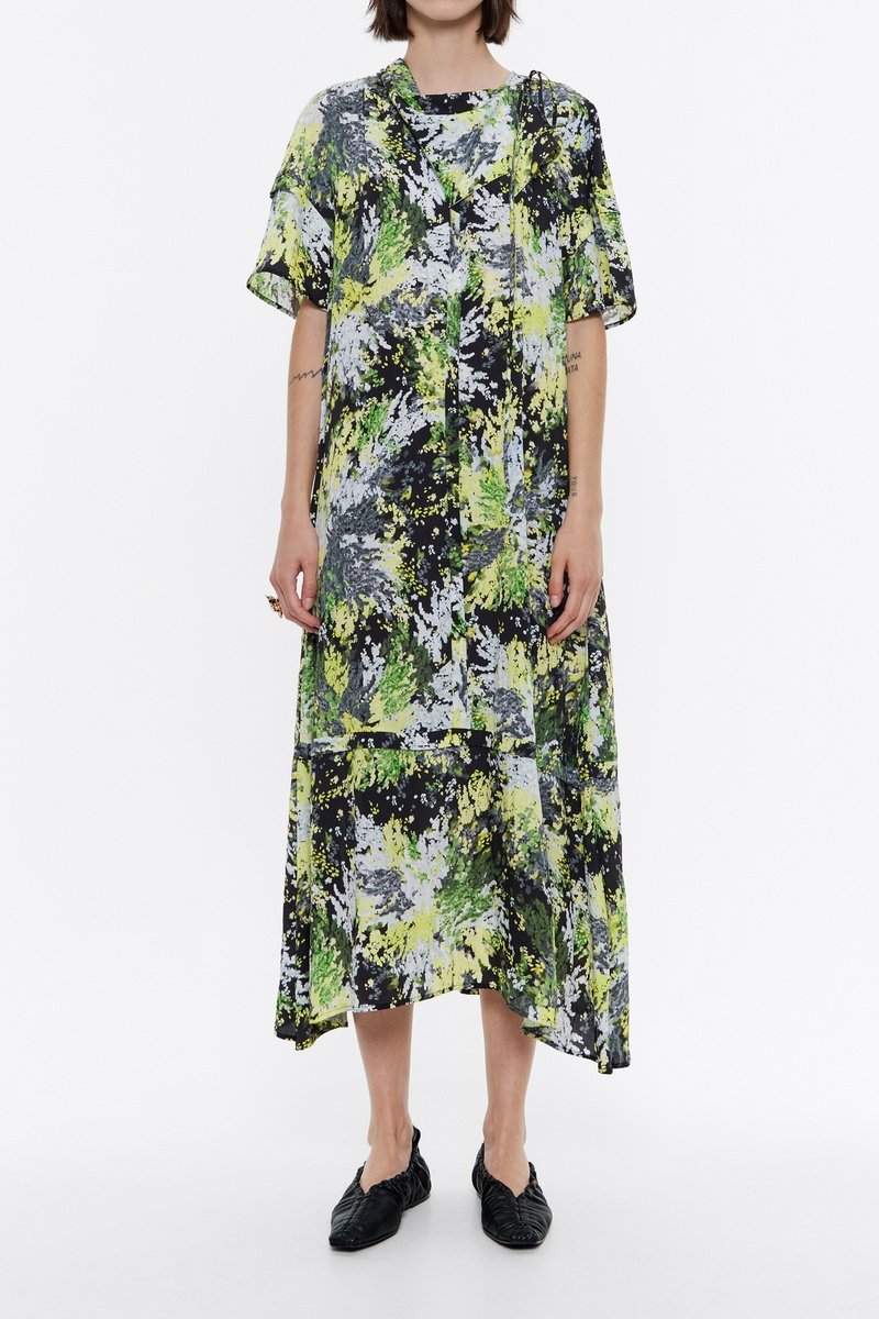 Abito a trapezio - Nero e verde chiaro