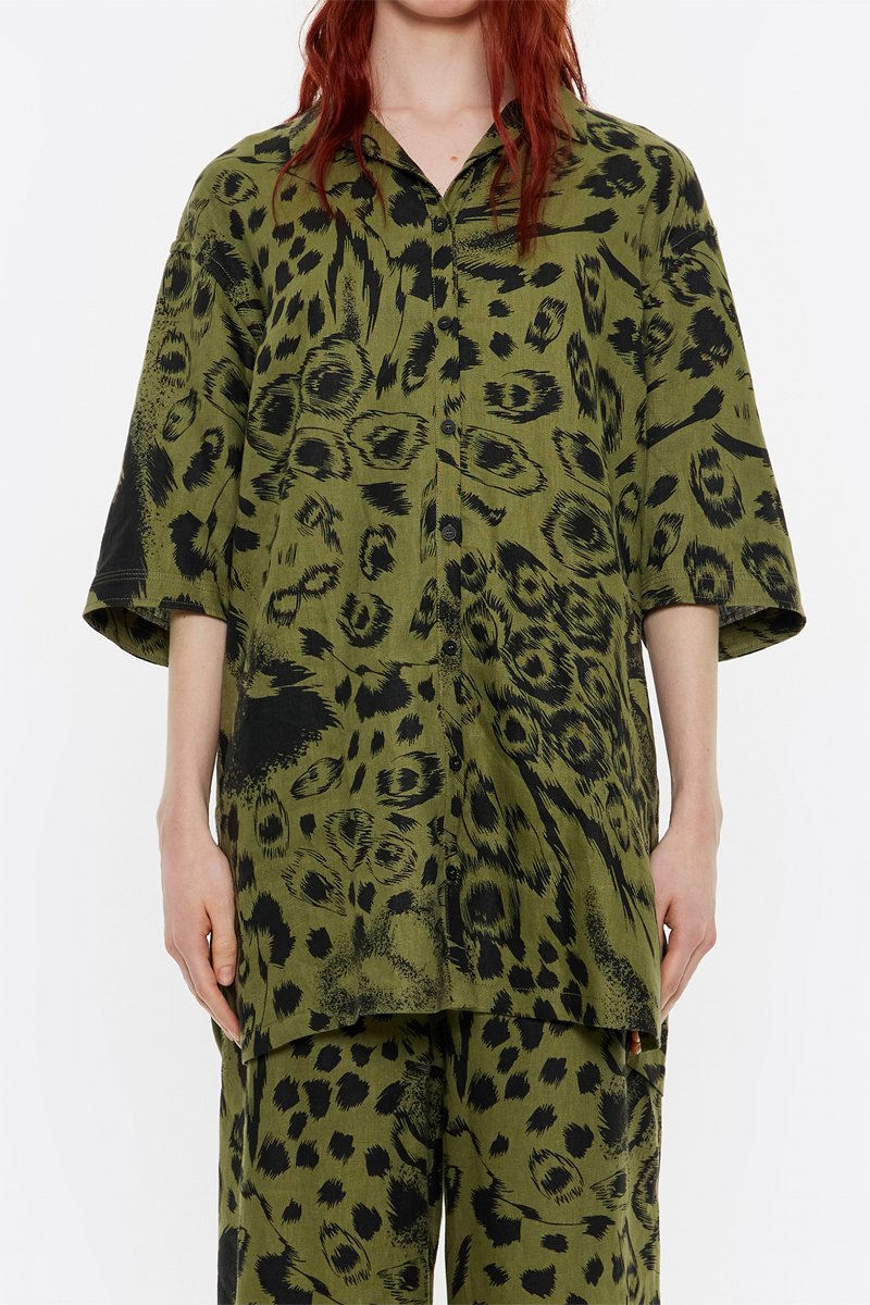 Camicia oversize in lino a maniche corte.