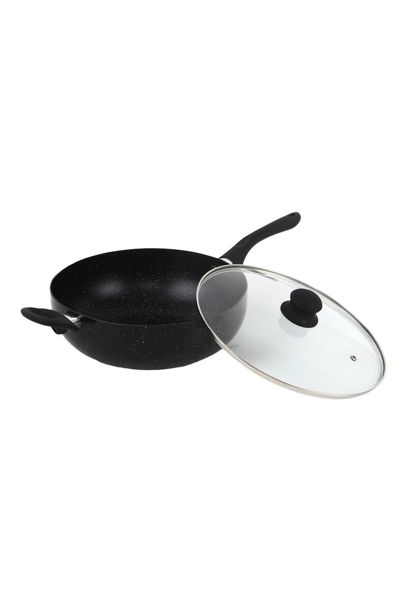 Wok in alluminio con coperchio.