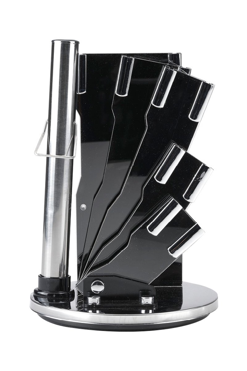 Concezione ergonomica: 5 misure di portacoltelli trasparenti, 1 portaforbici da cucina e 1 tubo per inserirci l’affilacoltelli.