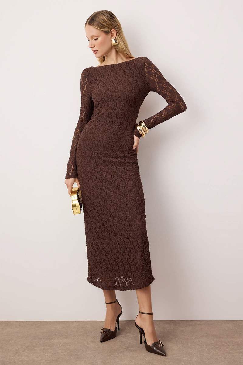 Abito a tubino in pizzo - Marrone scuro