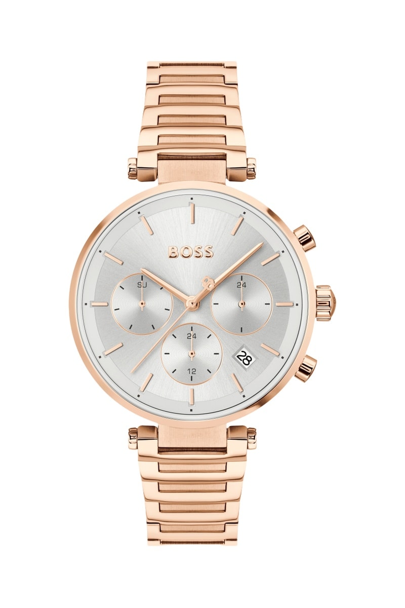 Cinturino e cassa placcato oro rosa.