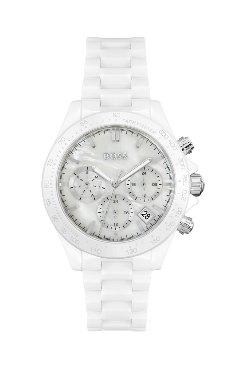 Orologio al quarzo in ceramica - Tachimetro e cronografo - Bianco