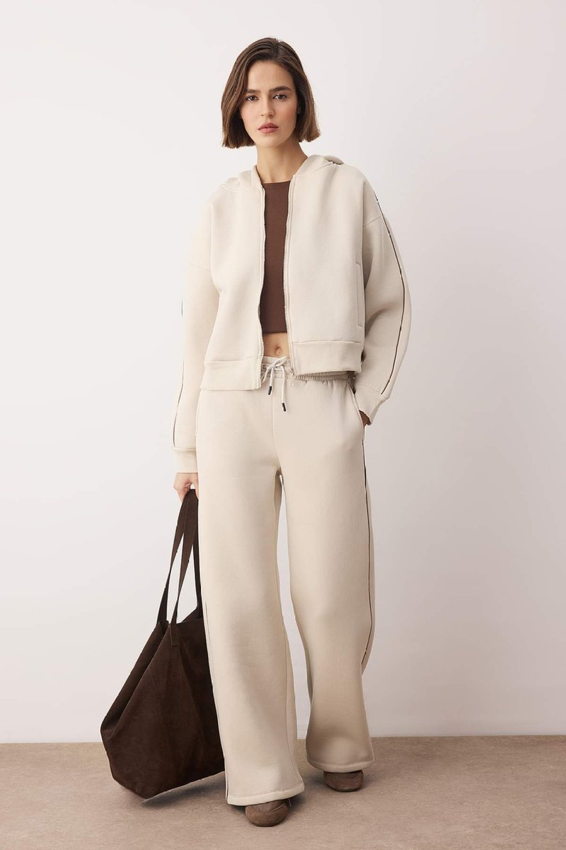 Felpa e pantaloni sportivi a vita alta - Beige e marrone