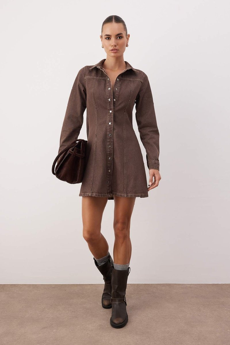Abito a camicia in jeans - Marrone