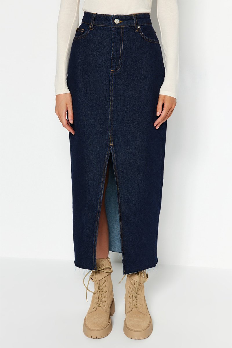 Gonna taglio dritto in jeans - Grigio, blu e arancione