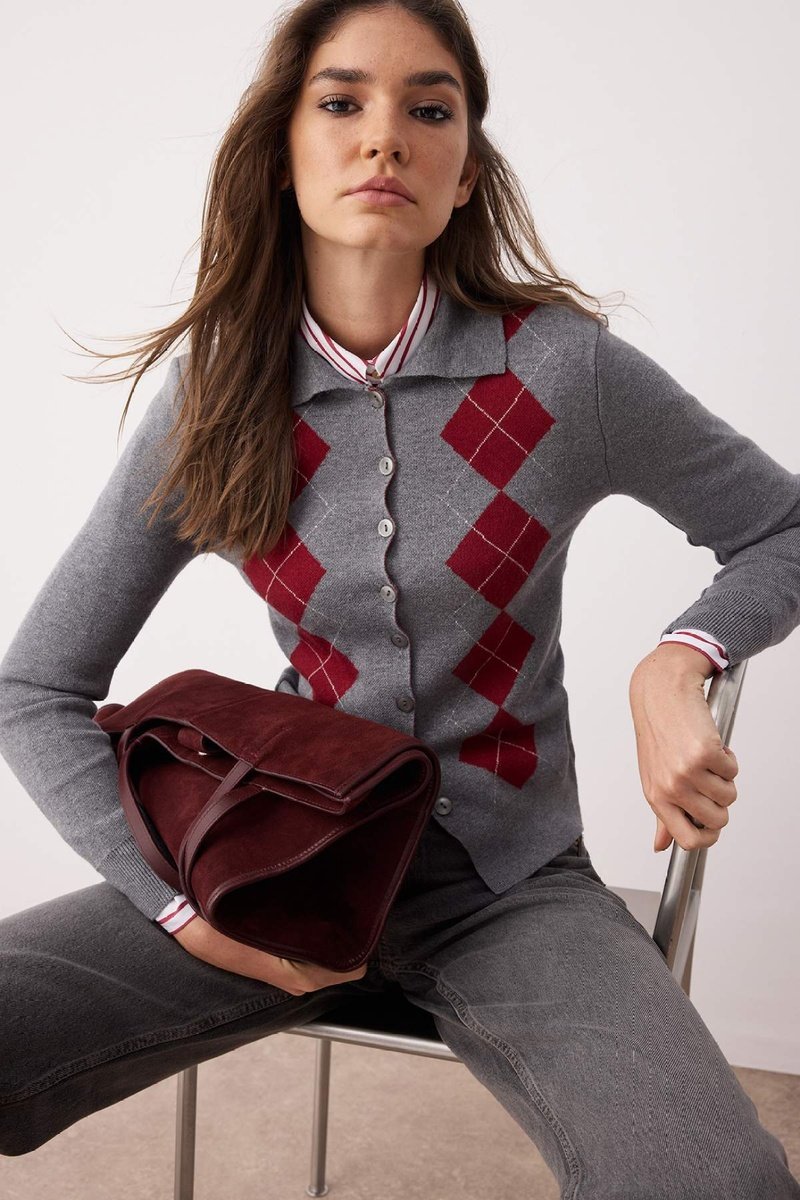 Cardigan - Rosso e grigio