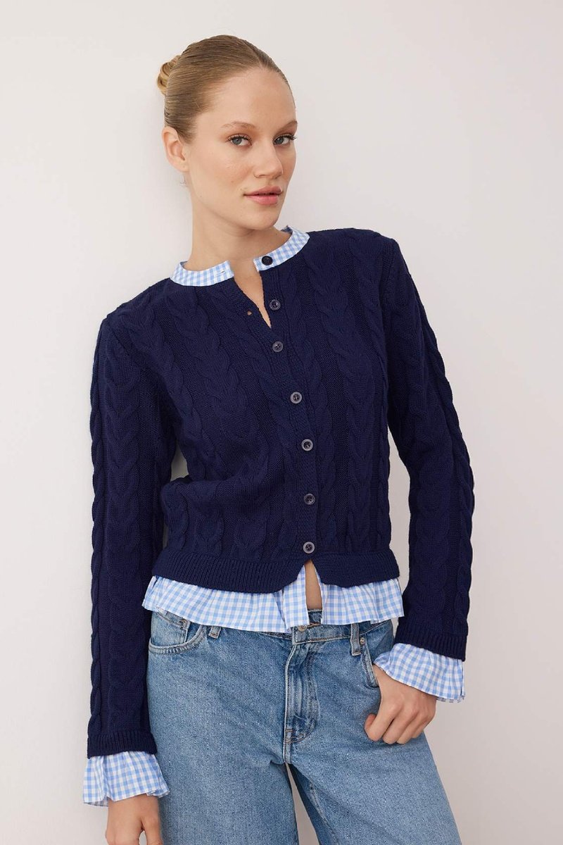 Cardigan effetto trompe-l’œil in maglia intrecciata.