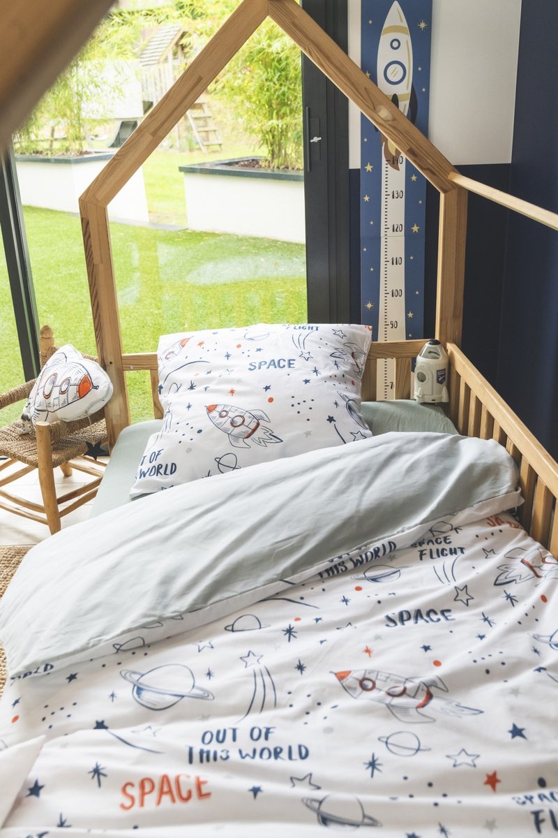 • Copripiumino: 140 x 200 cm/Lenzuolo sopra: 180 x 290 cm/Lenzuolo sotto: 80 x 190 cm