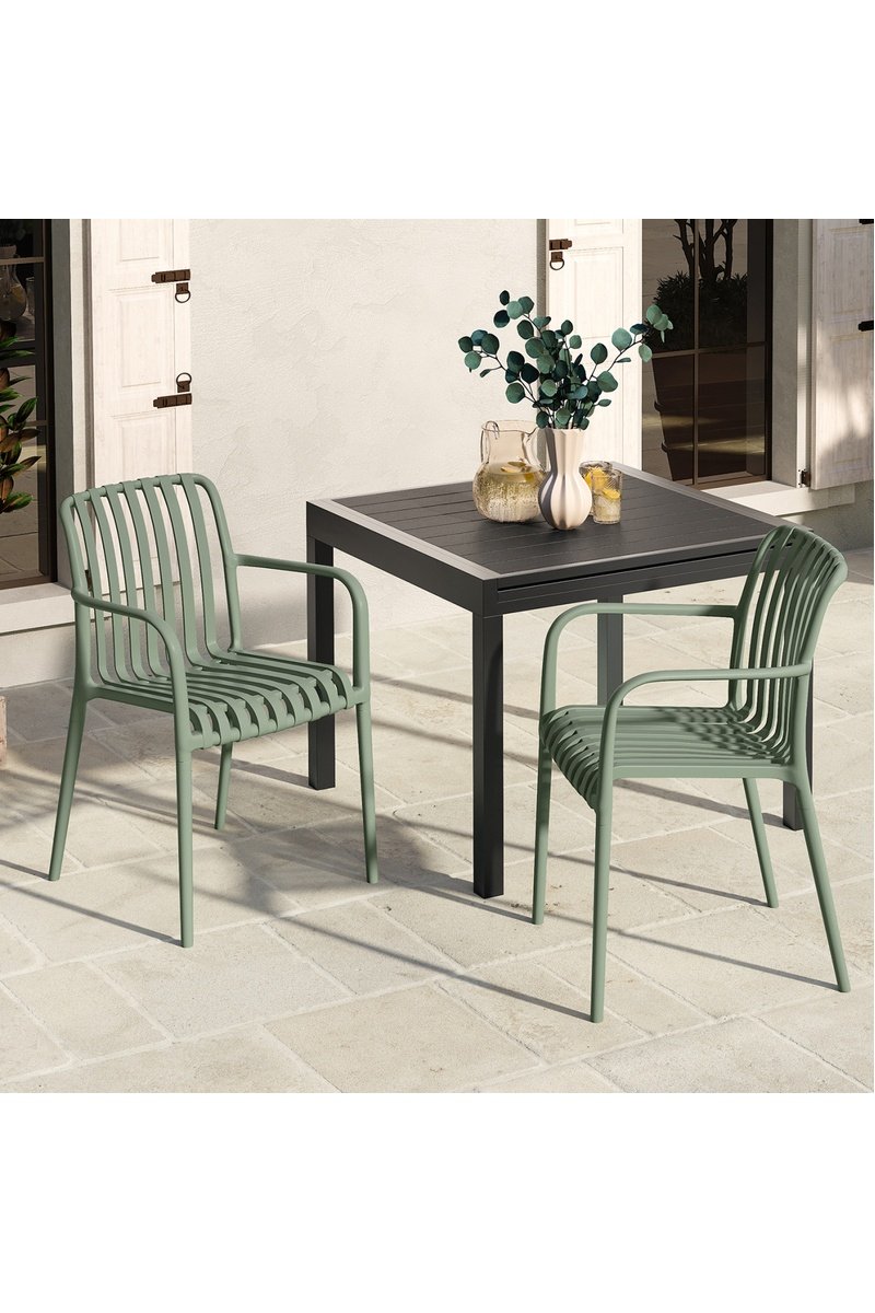 Struttura, seduta, schienale, braccioli in polipropilene.