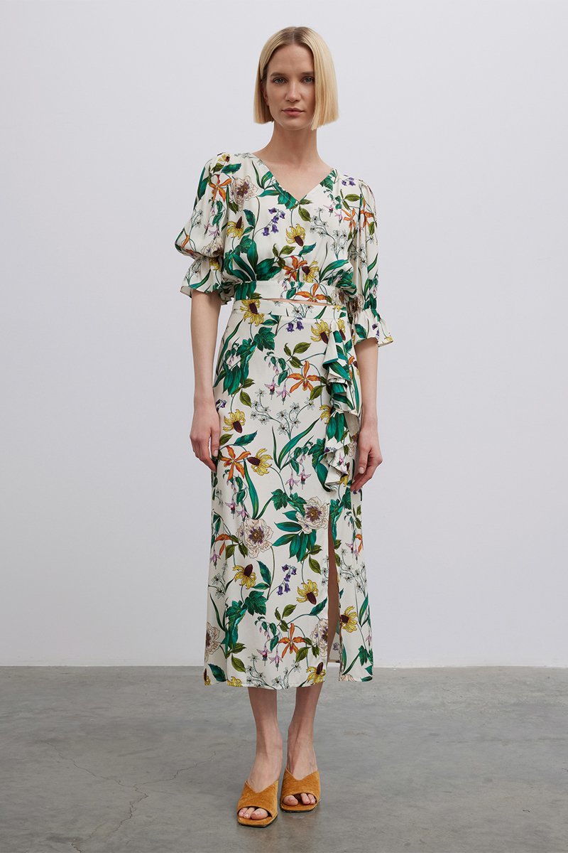 Top con maniche corte a palloncino.