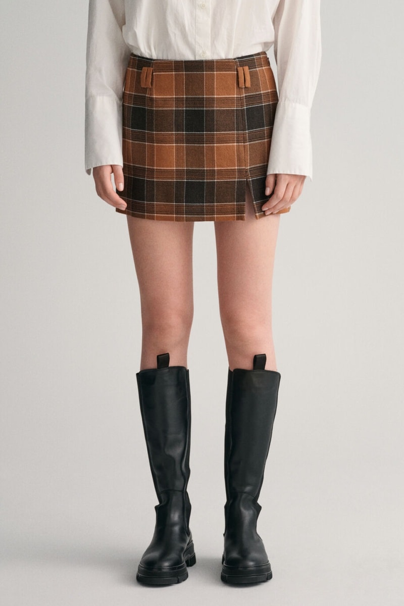 Minigonna a vita bassa in lana - Marrone