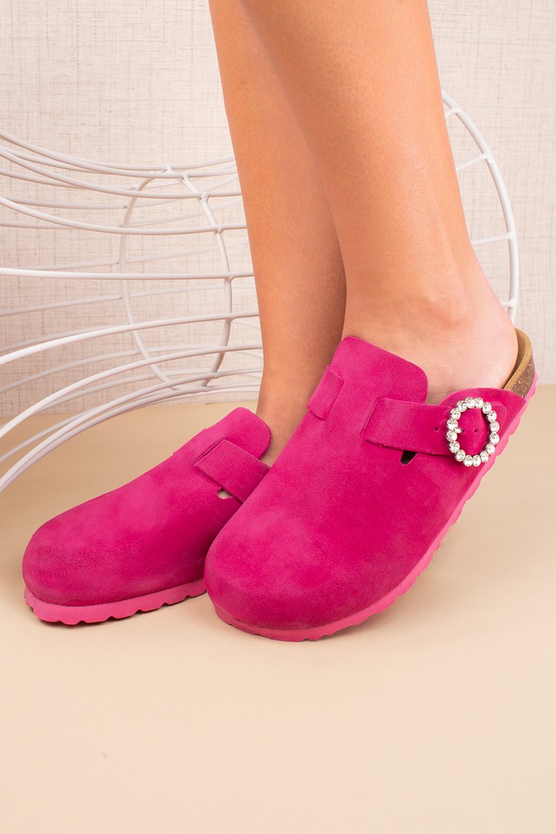 Sabot in pelle scamosciata - Fucsia