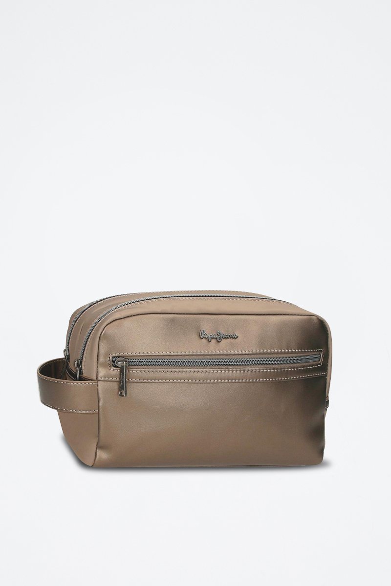 Tasca con cerniera e logo metallico sul davanti.