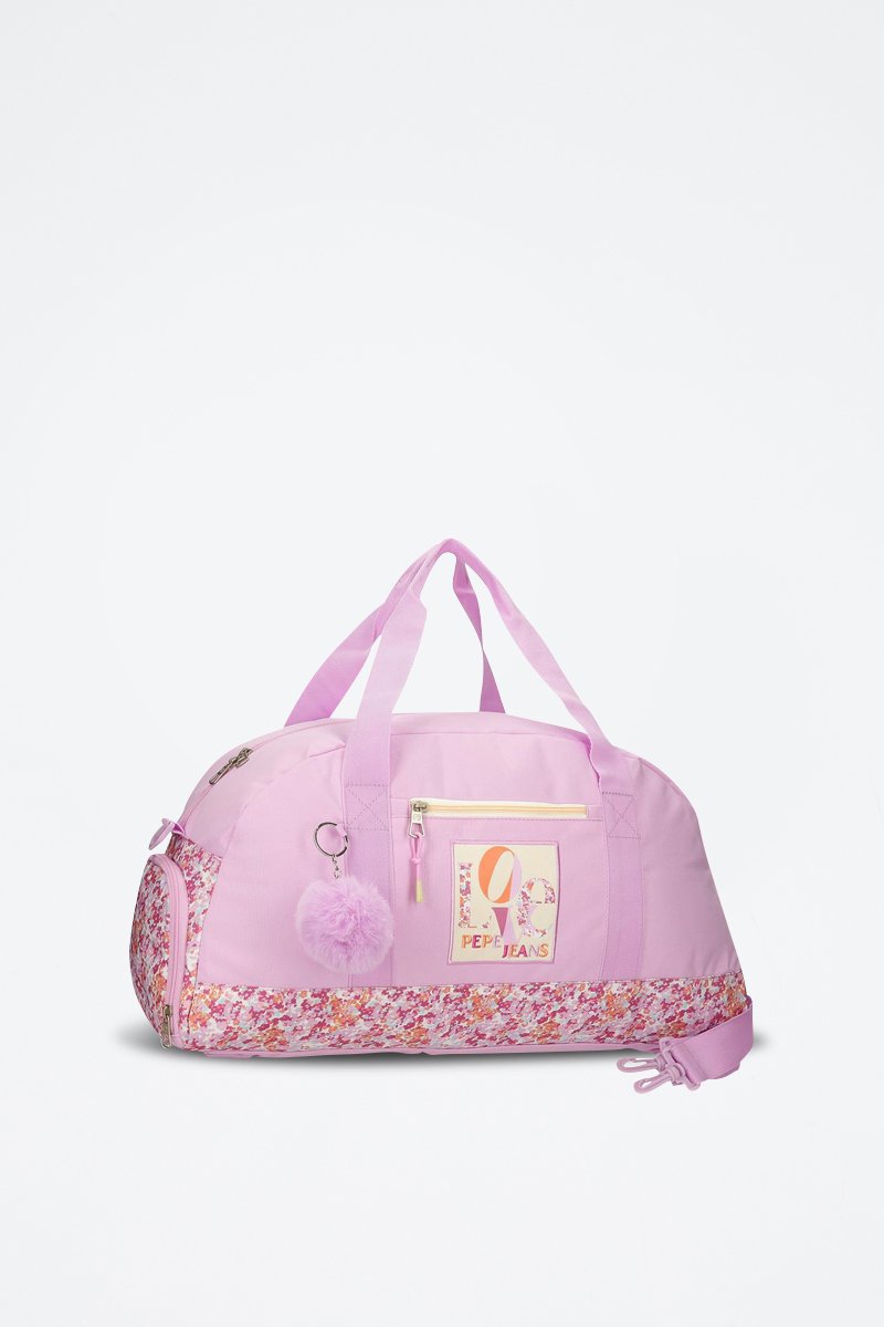 Tasca con cerniera, pompon amovibile, inserto con scritta e logo sul davanti.