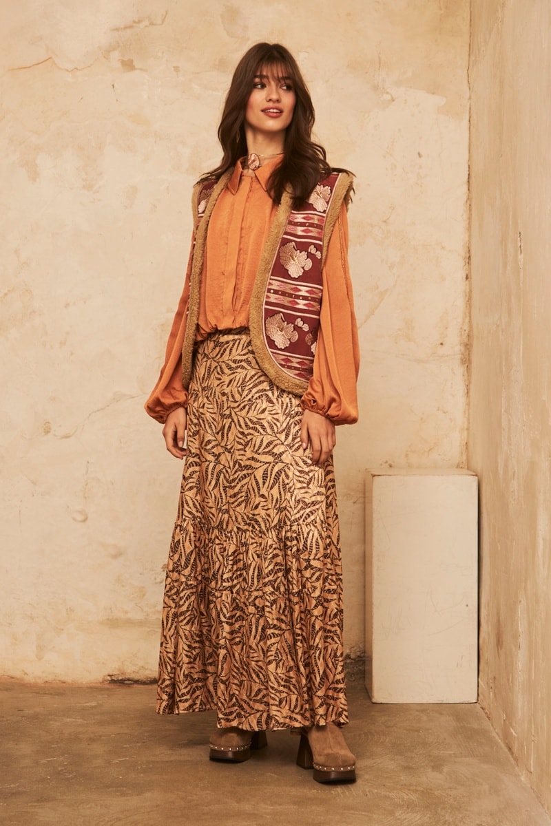 Gonna a portafoglio a vita alta Sita - Cammello