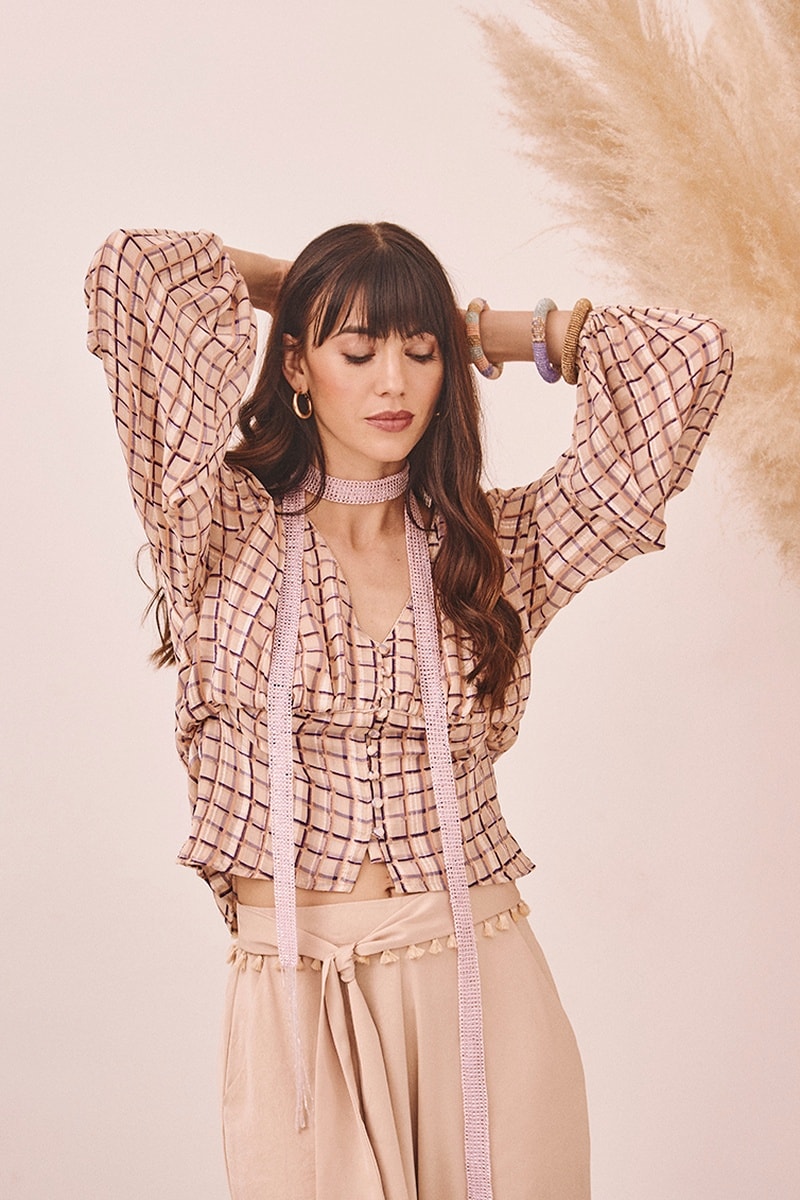 Camicia a maniche lunghe a sbuffo.