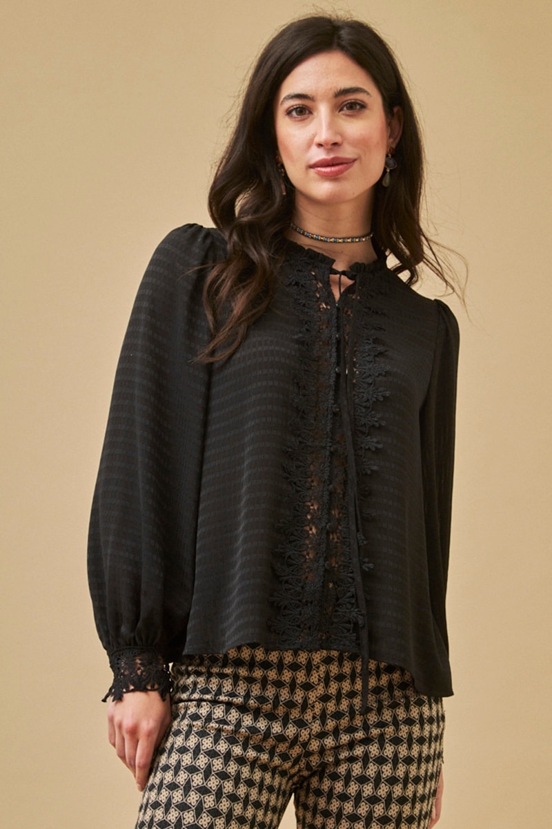 Inserti in guipure sulle maniche e sul davanti.