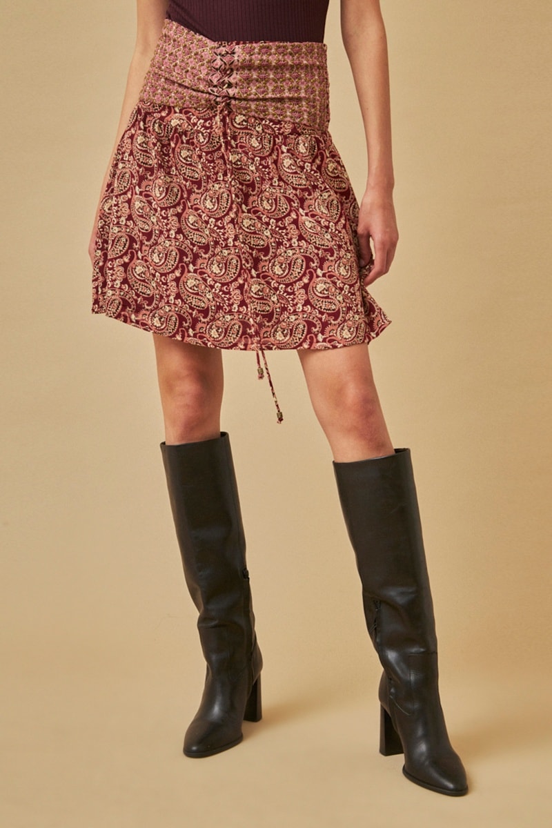 Minigonna a vita alta Kai - Bordeaux