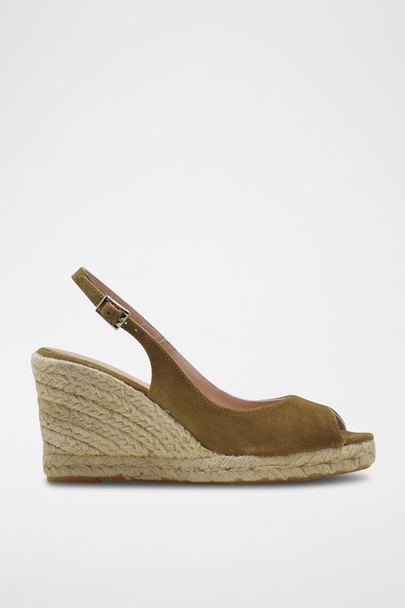 Sandali con zeppa in pelle scamosciata.