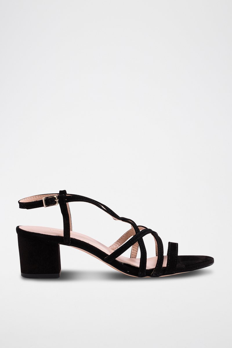 Sandali con tacco in pelle scamosciata - Nero