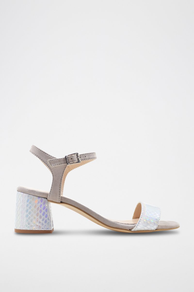 Sandali con tacco in pelle - Argentato