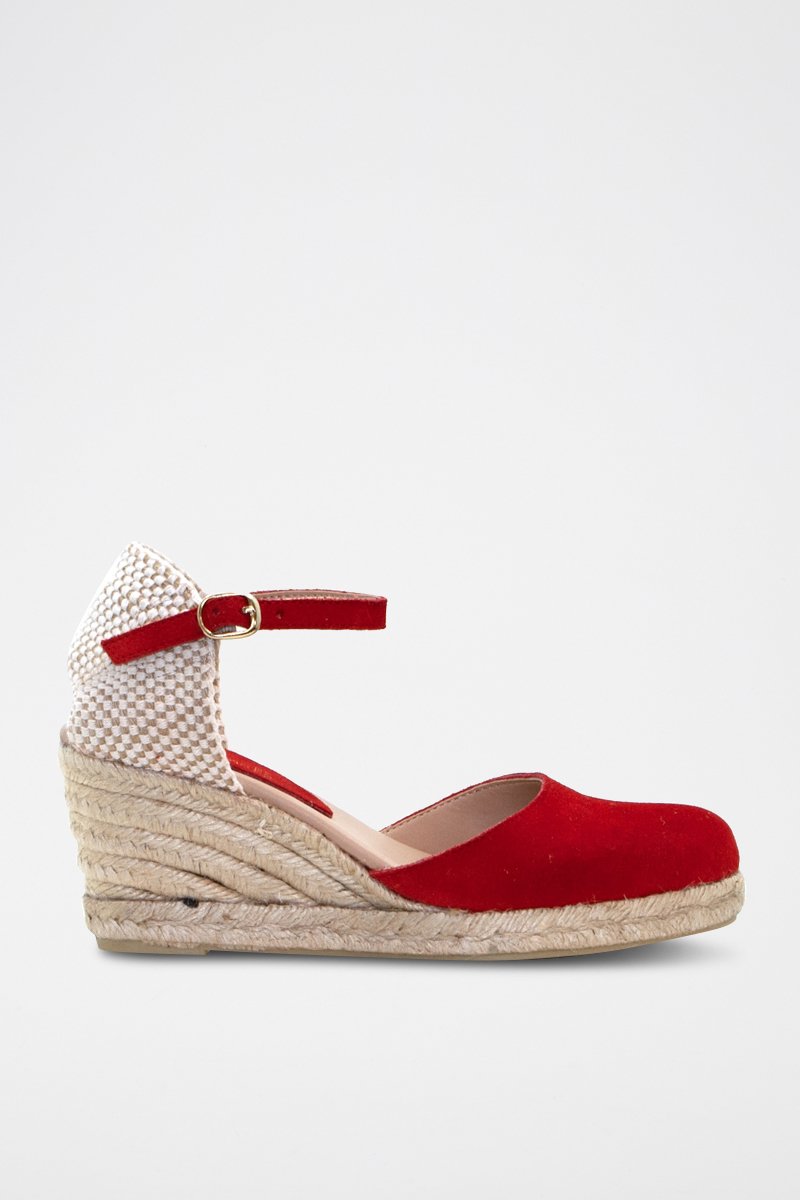 Sandali con zeppa in pelle - Bianco, beige e rosso