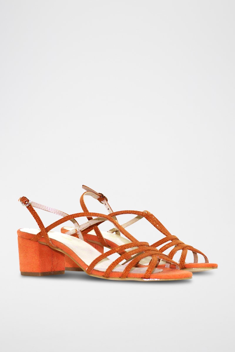 Sandali con tacco in pelle scamosciata glitterata.