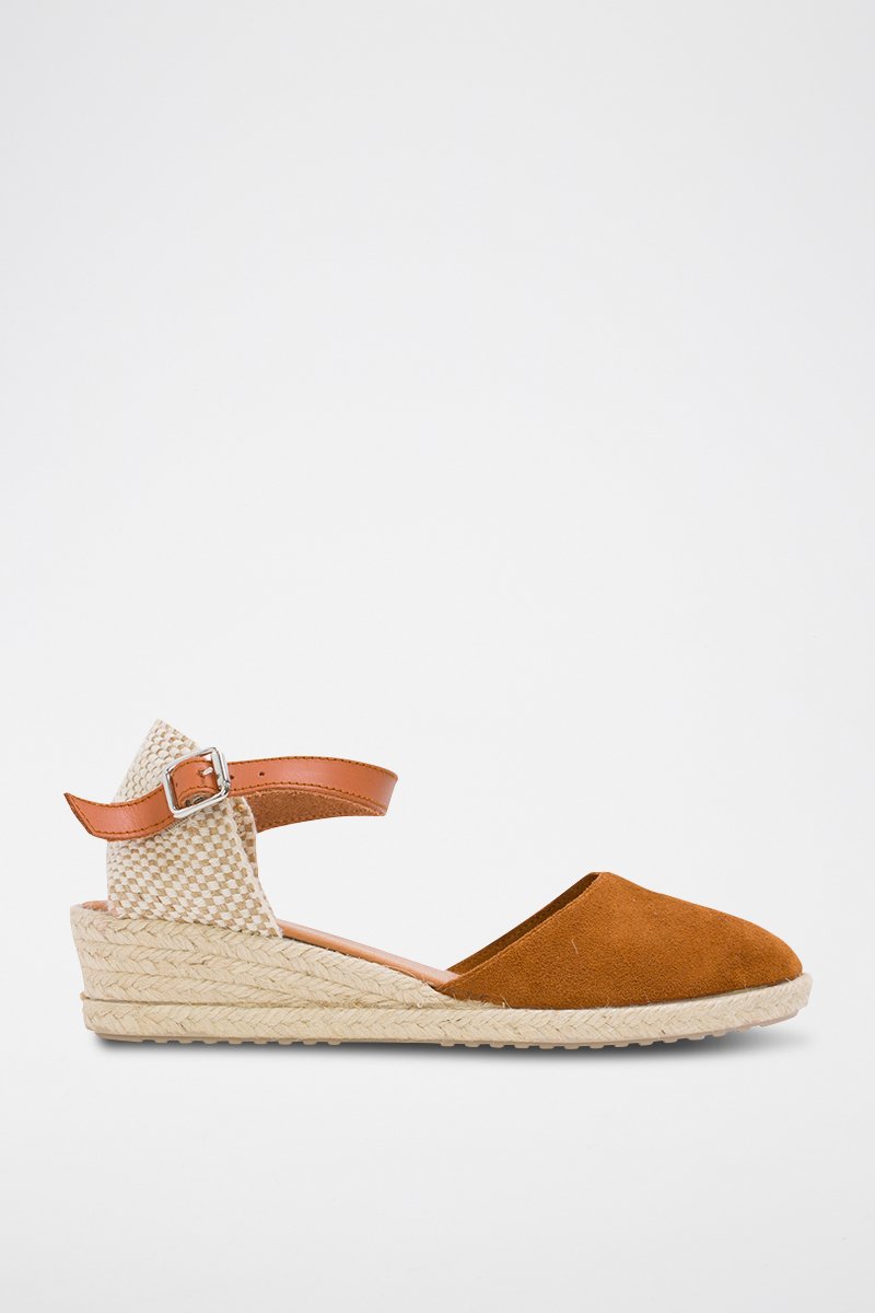 Espadrillas con zeppa in pelle scamosciata - Marrone