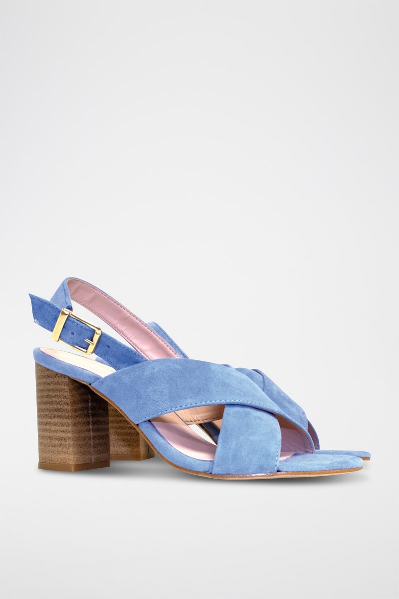 Sandali con tacco in pelle scamosciata - Blu