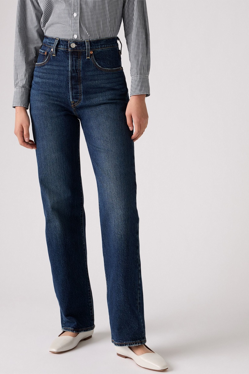 Jeans straight a vita alta Ribcage - Indaco