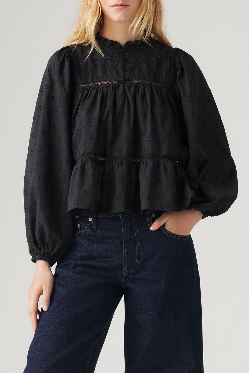 Blusa in sangallo Lucia - Nero