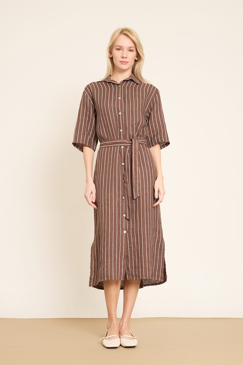 Abito a camicia in lino - Marrone