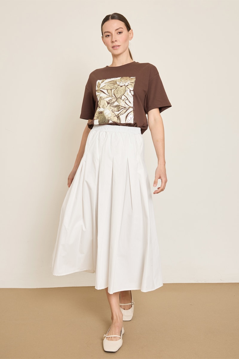Gonna midi a vita alta - Beige