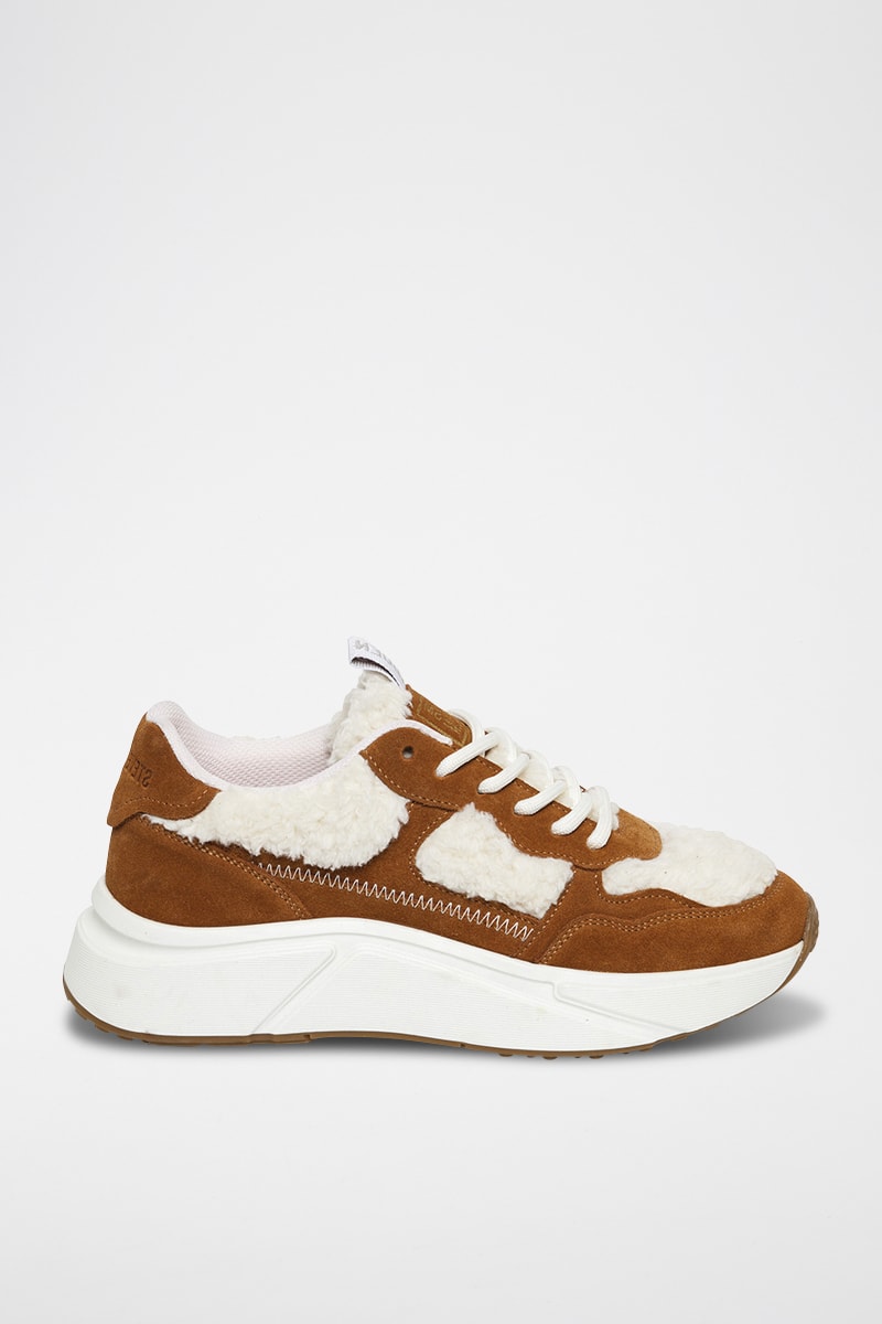 Sneakers platform in pelle e pelle scamosciata.
