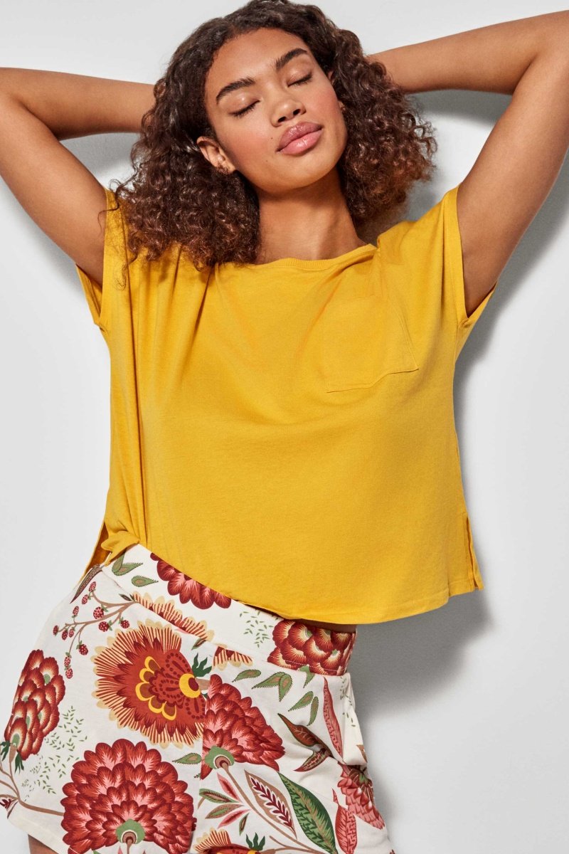Pigiama corto con t-shirt a maniche corte e dettaglio tasca sul petto.