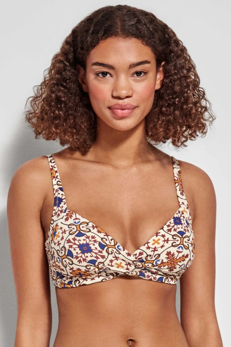Reggiseno bikini senza ferretti e con coppe in tessuto testurizzato riciclato con stampa piastrelle.