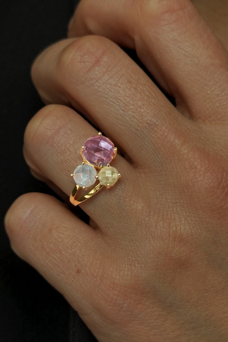 Anello - Argento placcato oro giallo, ametiste e topazi