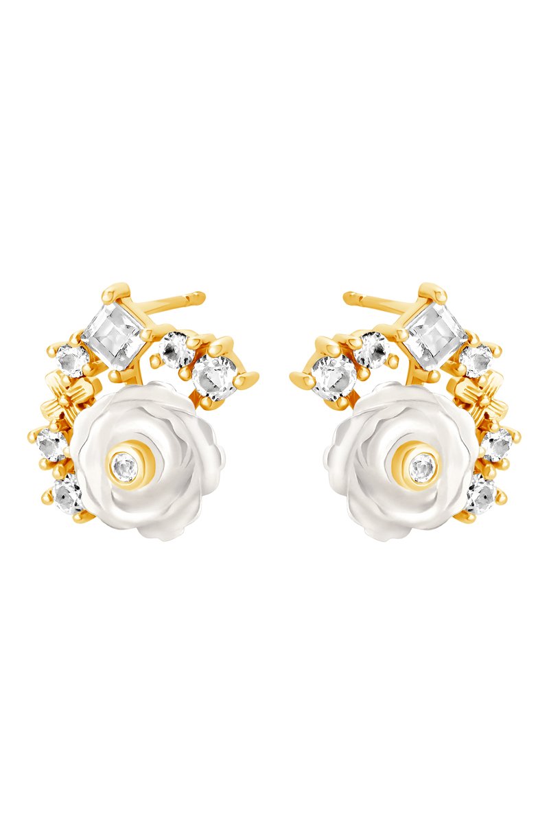 Orecchini in argento placcato oro giallo con madreperla e 6 topazi.