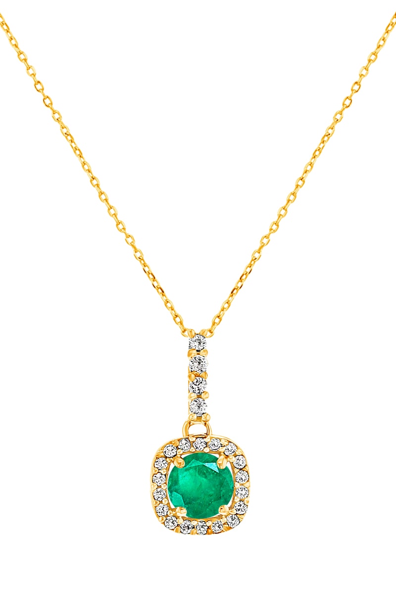 Collana - Argento placcato oro giallo, diamanti e smeraldo