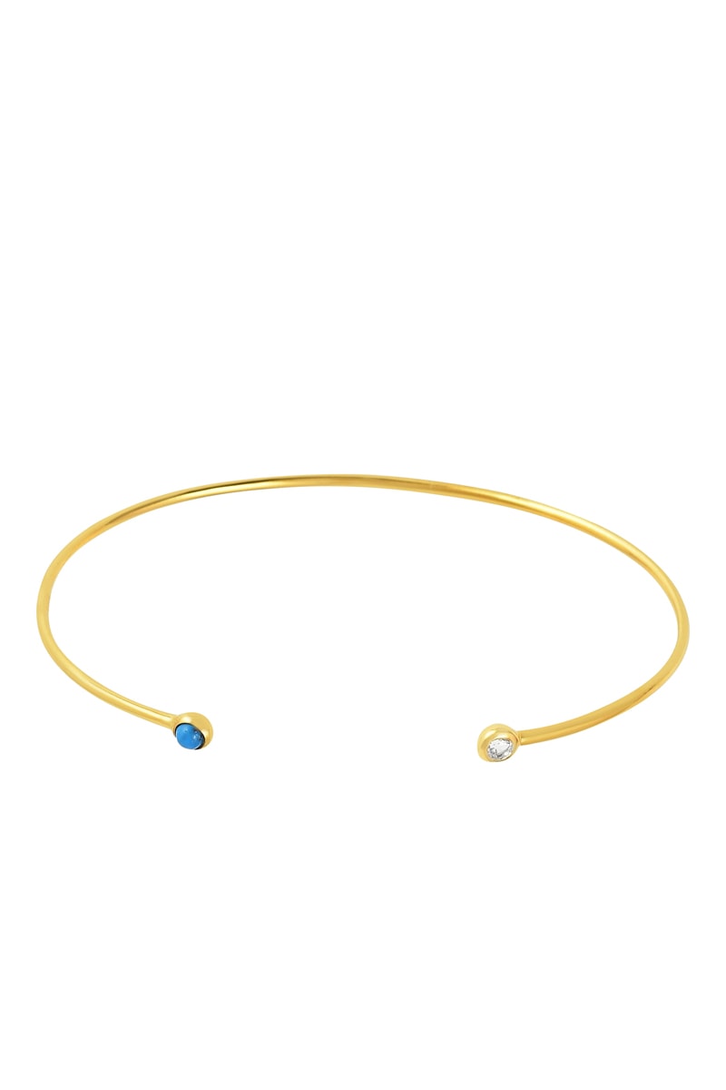 Bracciale bangle aperto in argento placcato oro giallo con un topazio e una turchese.
