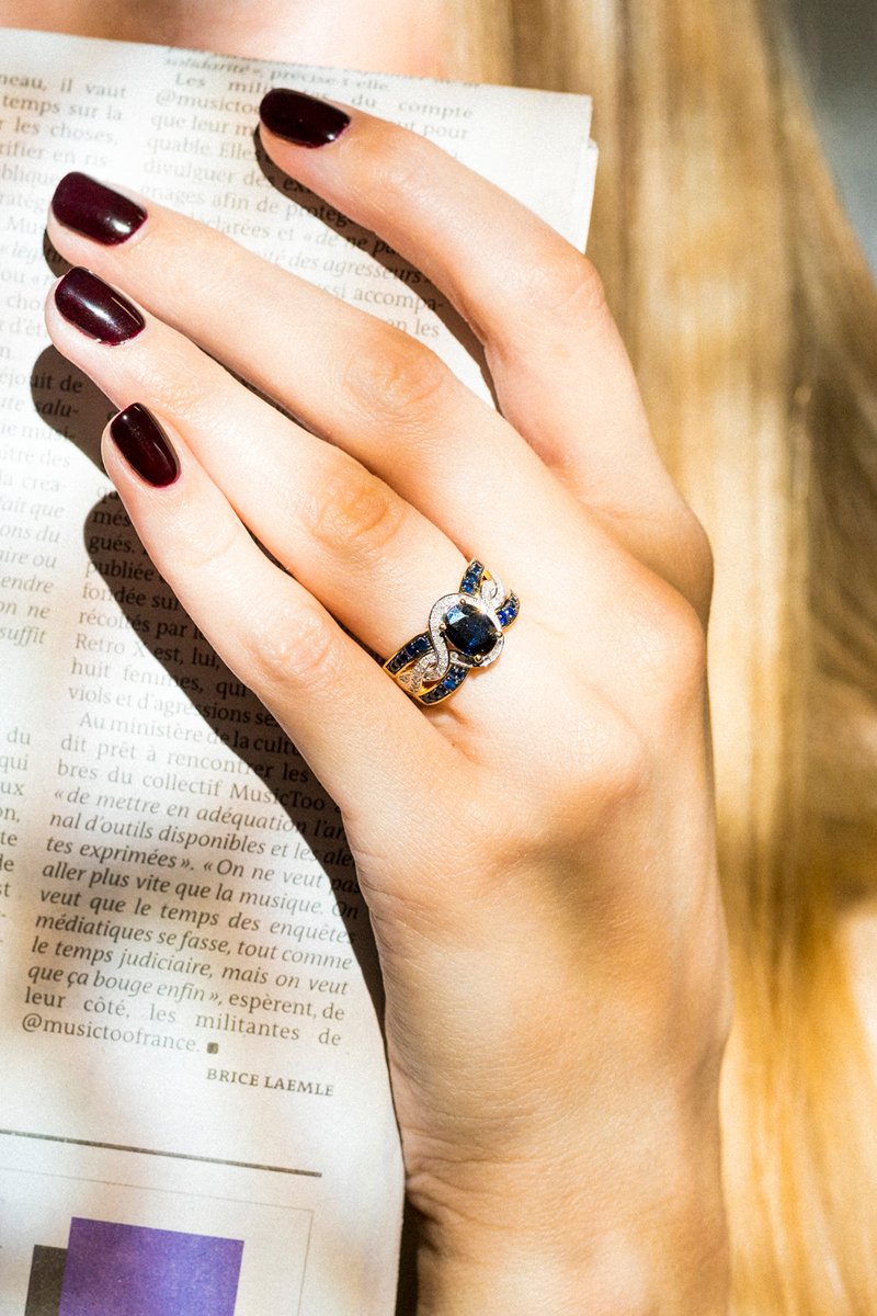 Anello in oro giallo con 50 diamanti e 21 zaffiri.